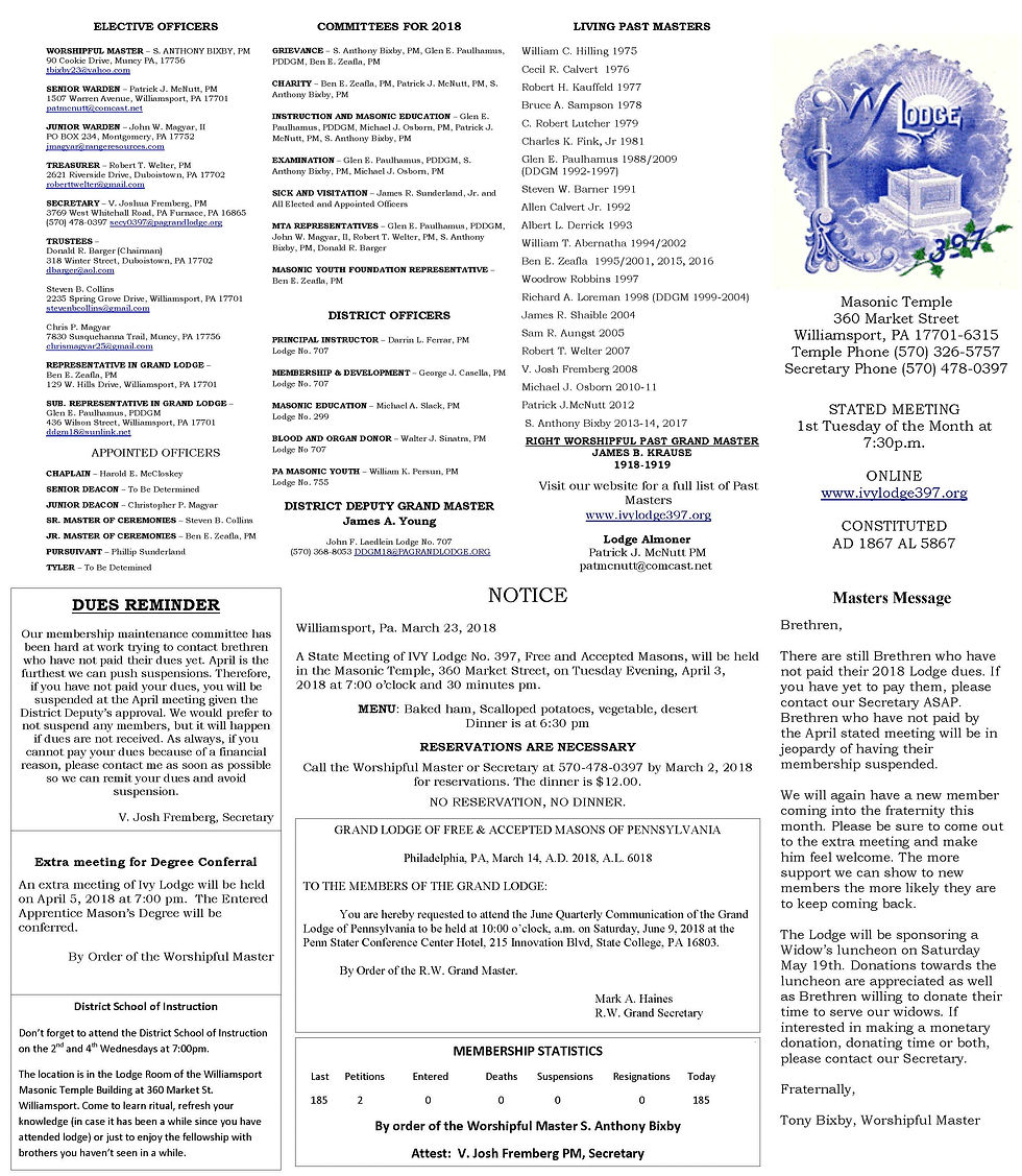 Ivy Lodge 397 & Lodge 106 agree on merger